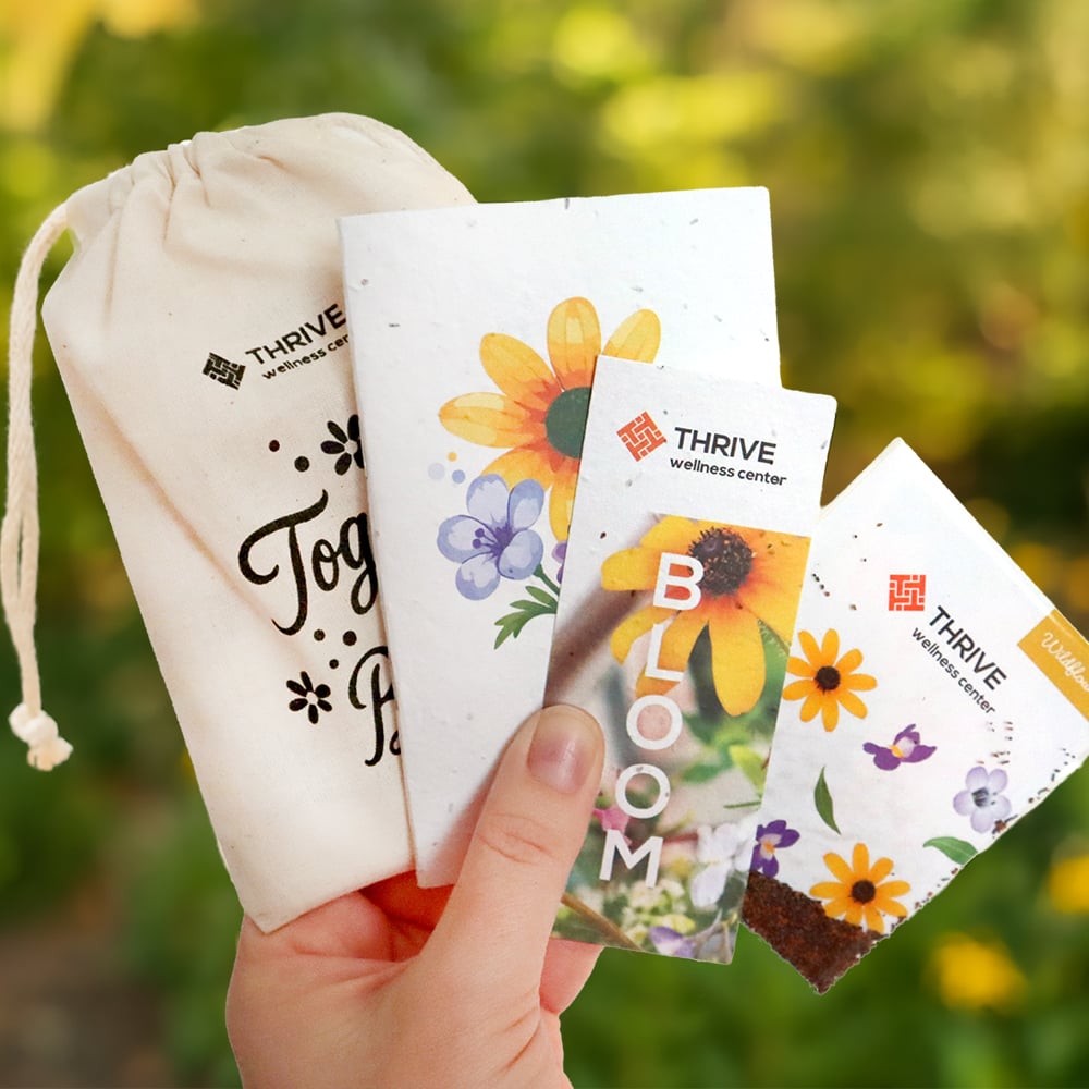 Bring on the blooms with this vibrant wildflower seed paper gift set that captures the fresh energy of spring planting. It’s a memorable way to inspire gardening, promote sustainability, and share an uplifting message. Ideal for client gifts, International Women’s Day, employee appreciation, or Earth Day, each piece features cheerful wildflower artwork to get recipients excited about the blooms they’ll soon grow.